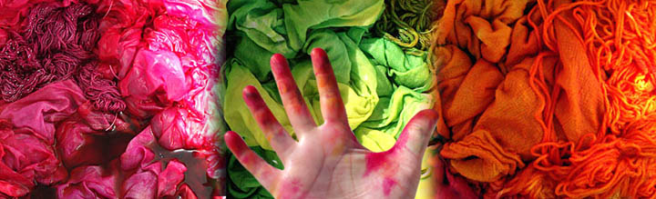 1st rule broken: always wear gloves 2nd rule broken: measure carefully 3rd rule broken: use urea 4th rule broken: always tie fibers loosely so the ties don’t ruin your smooth color transitions. I loved breaking this one– the light stripes the ties made on my yarns make me very happy.Playing with Kat Allison is always an adventure. She is a rule breaker, trouble maker, fab fiber artist, swirling creative vortex, good friend and adjective slinger.