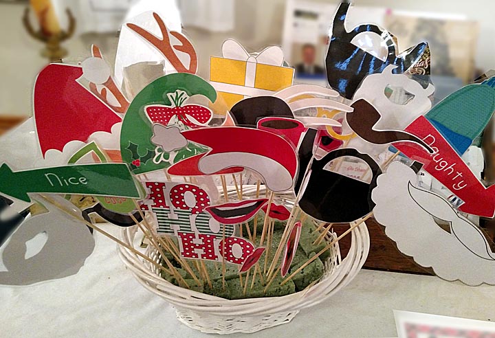 She said it was easy- she just googled FREE CHRISTMAS PHOTO PROPS, downloaded them, printed, trimmed and laminated them, then added the sticks with tape. When they were finished, she put them in a basket with floral foam to make a fab arrangement. Looks cute and fun to play with too!